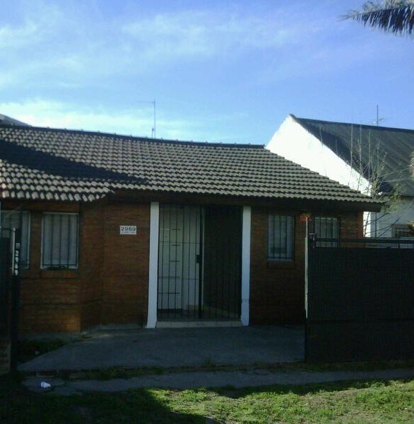 Vivienda tipo chalet con sus techos de tejas a dos aguas, porton corredizo al frente con ingreso para un vehiculo, cuenta con un living comedor y cocina integrada, dos dormitorios y un baño completo, jardin al fondo.