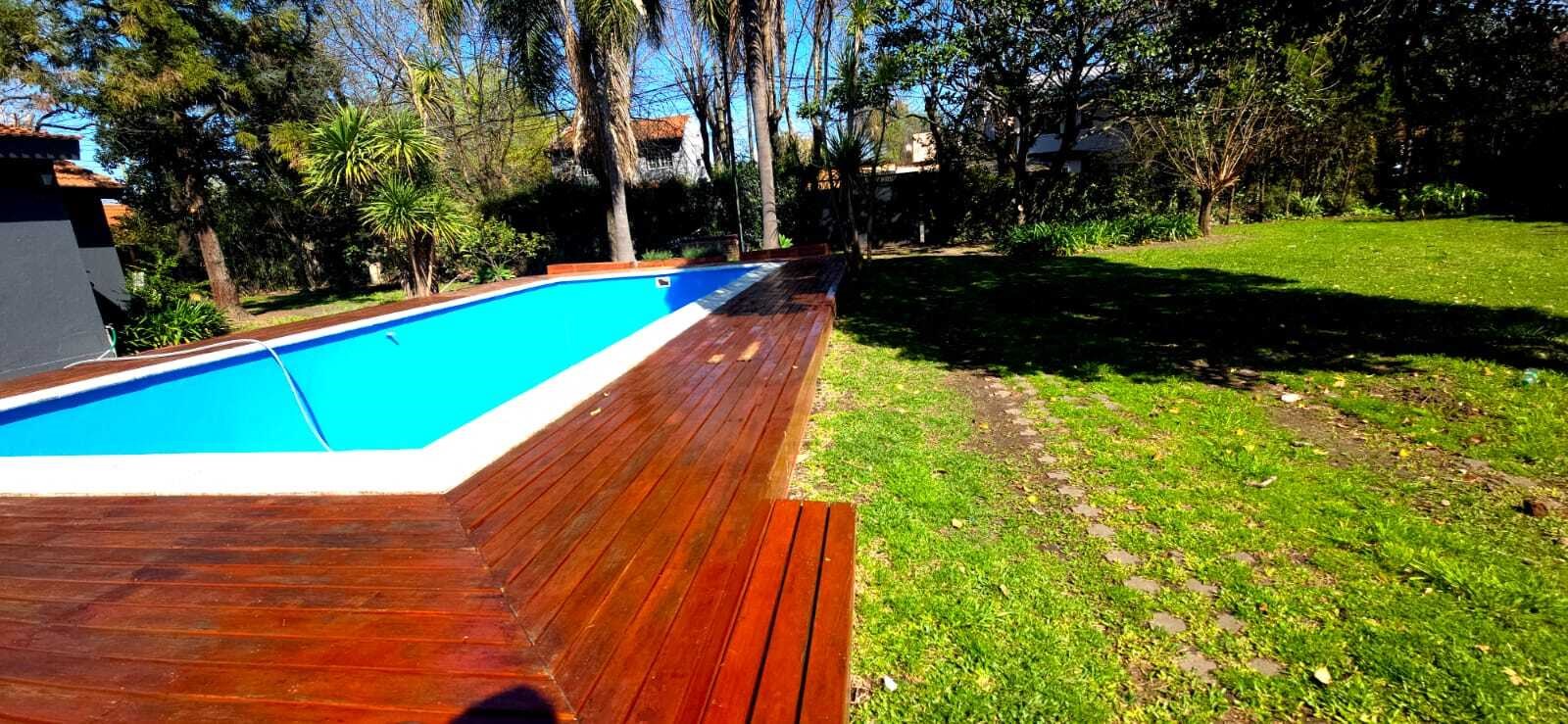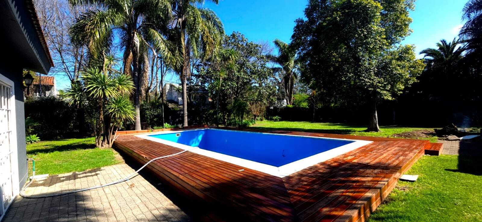 Importante Chalet, dentro del Barrio cerrado Bello Horizonte en General Pacheco, el mismo tiene un ingreso a través de la avenida Henry Ford con garita de seguridad las 24 hs, la casa se desarrolla en una sola planta. con un lote de 711 m2,parquizado y con hermosos y diversos arboles y palmeras, quincho semi cubierto, pileta de hormigón de de 8 x 4 con deck de madera y solárium, la casa posee 120 m2 cubiertos con tres dormitorios uno con baño en suite y vestidor, un baño completo para los otros dos dormitorios, living comedor con hogar y cocina comedor diario completa con muebles de alto y bajo mesada en buenas condiciones de uso, toda la casa posee radiadores de aluminio y caldera.